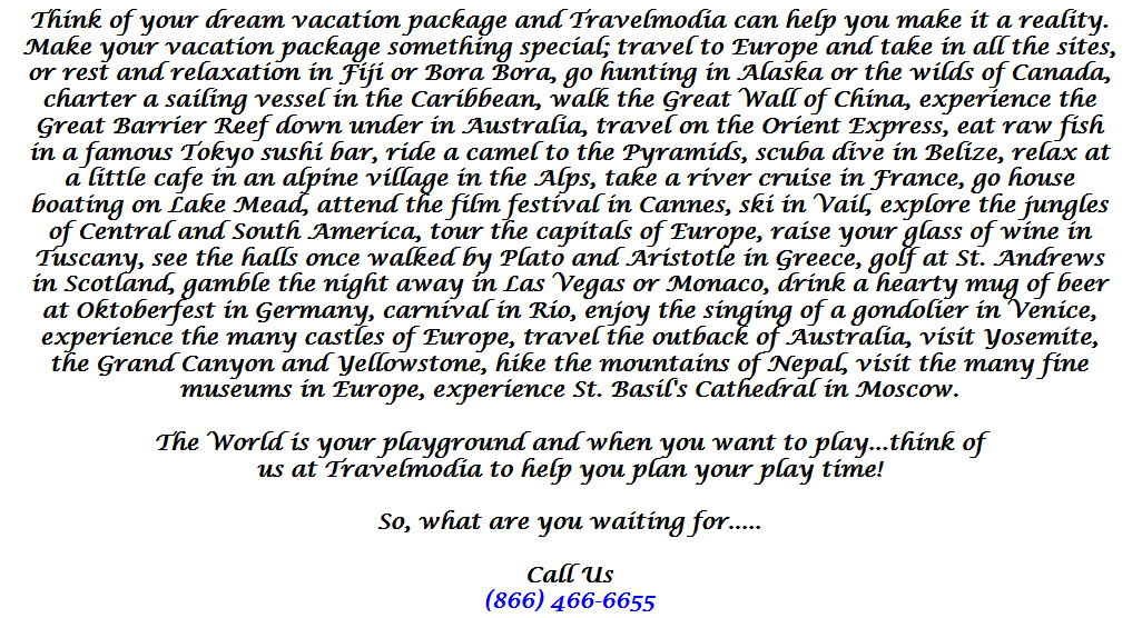 Travelmodia - Where Dreams Become Reality. Call us now at 866-466-6655 to turn your dreams into reality.